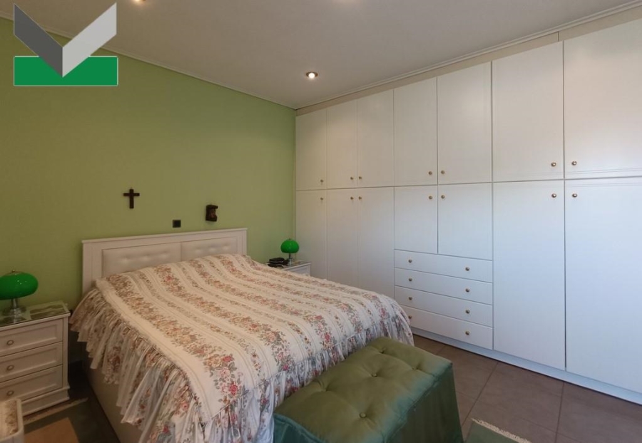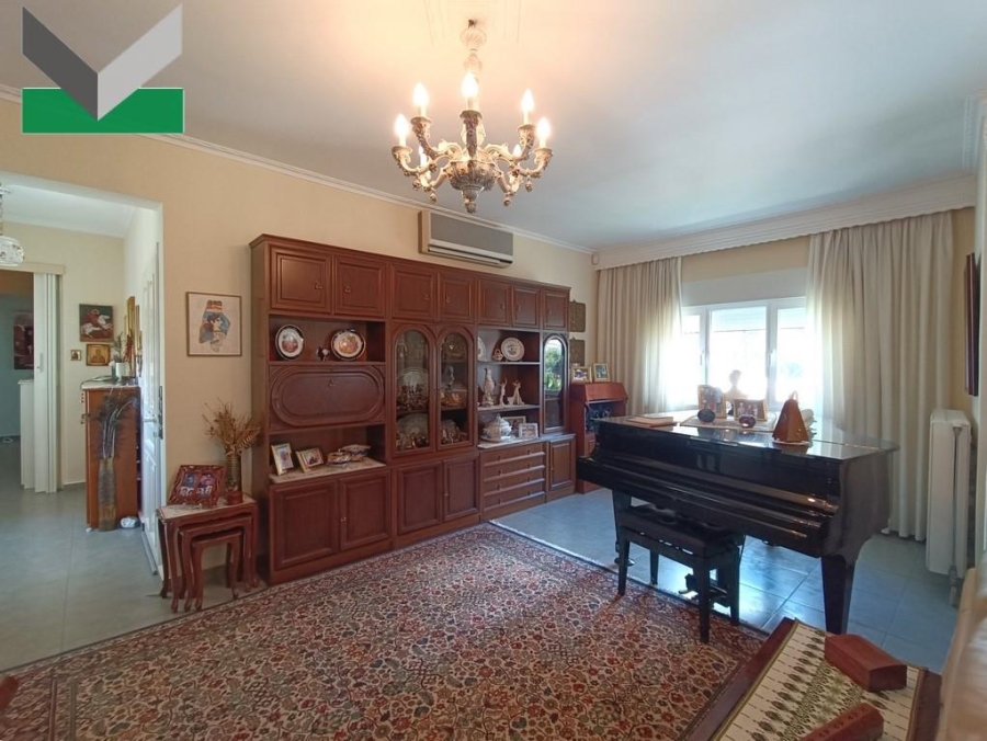 1ος ΟΡΟΦΟΣ (153 τμ.): Διαμέρισμα με ενιαίο καθιστικό, τζάκι ενεργειακό-ηλεκτρικό, χώρο τραπεζαρίας και ανοικτή κουζίνα με εντοιχισμένες ηλεκτρικές συσκευές (κουζίνα, φούρνος, ψυγείο, πλυντήριο πιάτων). Διάδρομος προς υ/δ master με μπαλκόνι, και μπάνιο με μπανιέρα. Επιπροσθέτως, 2 υ/δ με μπαλκόνι. Δεύτερο μπάνιο με μπανιέρα. WC επισκεπτών. Δάπεδα πλακάκια. Η σκάλα του κτιρίου οδηγεί στο ημιυπόγειο.