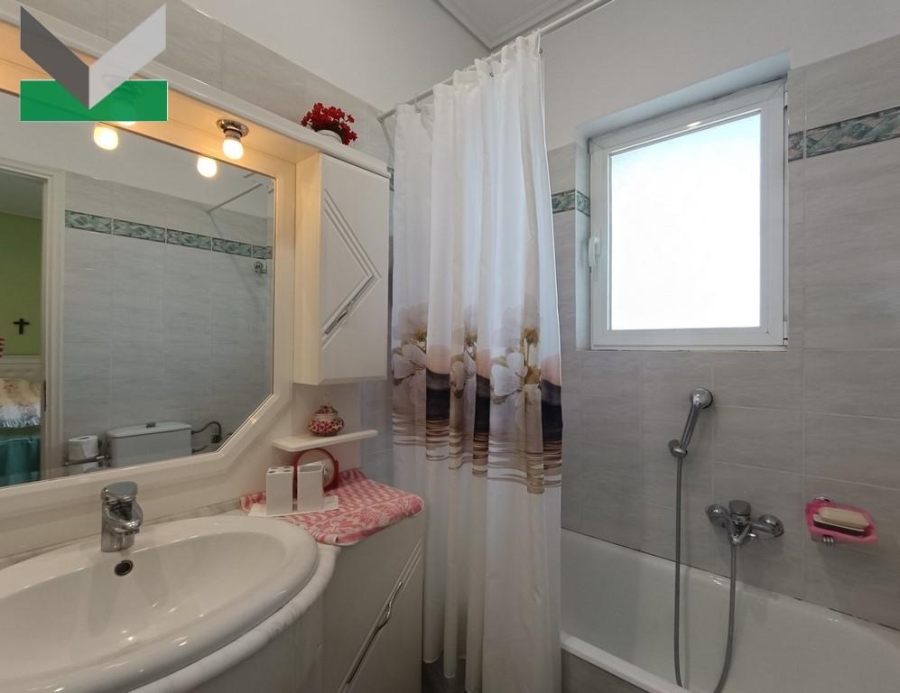 μπανιέρα. Επιπροσθέτως, 2 υ/δ με μπαλκόνι. Δεύτερο μπάνιο με μπανιέρα. WC επισκεπτών. Δάπεδα πλακάκια. Η σκάλα του κτιρίου οδηγεί στο ημιυπόγειο.
