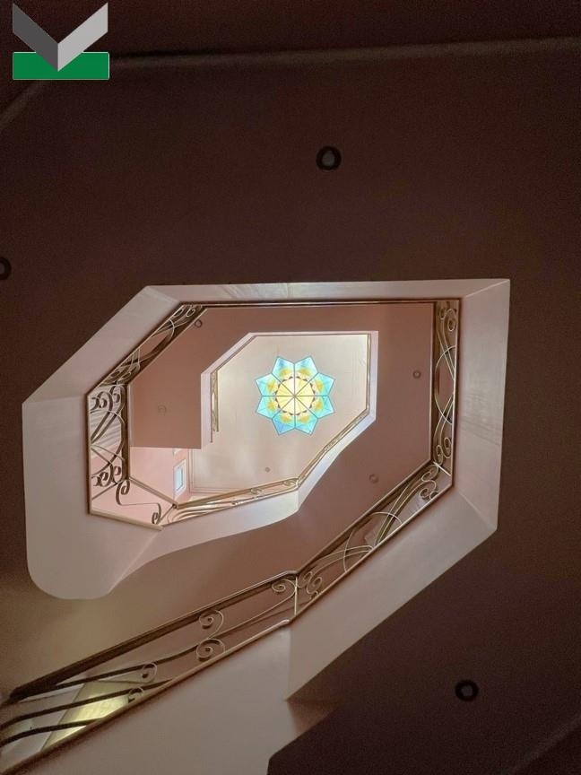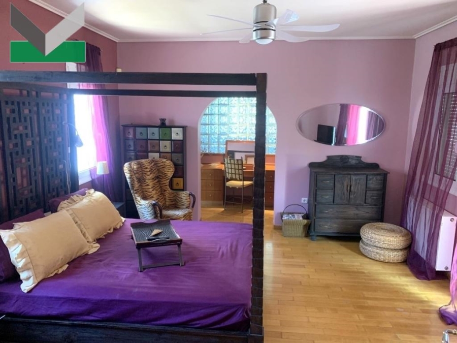 1ος ΟΡΟΦΟΣ (129,64 τμ): Περιλαμβάνει υ/δ master (γονέων), με βεστιάριο και μπάνιο (ντουζιέρα) με πρόσβαση σε μπαλκόνι καθώς και 2ος χώρος με μπανιέρα (τζακούζι). Επιπλέον, 2 υ/δ το καθένα με εσωτερικό μπάνιο (ντουζιέρα), παράθυρα και μπαλκόνι. Επίσης, στο χωλ εξωτερικά των υ/δ υπάρχει εντοιχισμένη ντουλάπα με πολυκουζινάκι και πρόσβαση σε μπαλκόνι. Δάπεδα πατώματα. Η εσωτερική δρύινη σκάλα –με υπέροχο φωτιζόμενο βιτρό στο ταβάνι- οδηγεί σε ταράτσα, στην οποία βρίσκεται το μηχανοστάσιο του ασανσέρ.