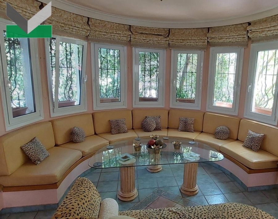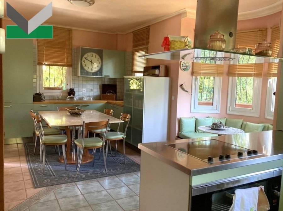 ΙΣΟΓΕΙΟ ΥΠΕΡΥΨΩΜΕΝΟ (151,15 τμ): Η κεντρική είσοδος οδηγεί σε χωλ και σε σαλόνι με τζάκι και κτιστό καθιστικό με παράθυρα. Ανεξάρτητη κουζίνα εξαιρετικής αισθητικής (MODA BAGNO), με παράθυρα, εντοιχισμένα ντουλάπια, ηλεκτρικές συσκευές (κεραμικές εστίες, φούρνος 90 εκ., πλυντήριο πιάτων 60 εκ., φούρνος μικροκυμάτων) καθιστικό και χώρο φαγητού. Πόρτα οδηγεί στον εξωτερικό χώρο. Από το χωλ οδηγούμαστε σε δεύτερο καθιστικό/τραπεζαρία με bar και 2ο τζάκι. Δύο μπαλκονόπορτες παρέχουν απευθείας πρόσβαση σε βεράντα και στην πισίνα. WC επισκεπτών. Δάπεδα πλακάκια και μάρμαρο. Η εσωτερική δρύινη σκάλα και το ασανσέρ οδηγούν στον όροφο.