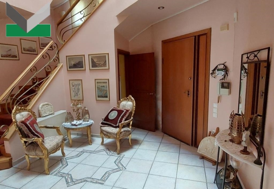 Εξαιρετικής κατασκευής κατοικία τριών επιπέδων -επί της προσόψεως- με μεγάλη πισίνα και κήπο,  εντός οικοπέδου 1.013,15 τμ κοινόχρηστου (με την πίσω κατοικία), πολύ κοντά στην πλατεία, την συγκοινωνία, τα σχολεία και την τοπική αγορά.