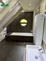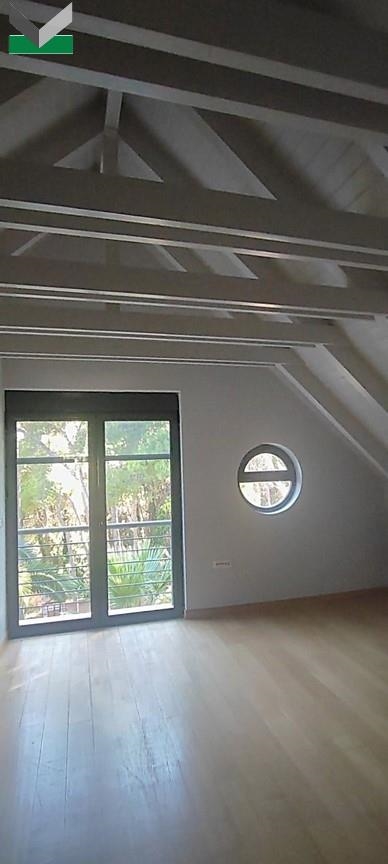 Η ανεξάρτητη, κεντρική είσοδος της κατοικίας, οδηγεί, με εσωτερική μαρμάρινη σκάλα, απευθείας στο διαμέρισμα. Η μεγάλη, φωτεινή αίθουσα υποδοχής με το τζάκι, παρέχει άνετο χώρο για καθιστικό και τραπεζαρία. Διπλή, συρόμενη μπαλκονόπορτα, οδηγεί σε ευρύχωρη βεράντα στην πρόσοψη, ενώ δύο επιπλέον μικρά μπαλκόνια παρέχουν επιπλέον φως και θέα στον εσωτερικό χώρο. Η ξύλινη κατασκευή, στις κεκλιμένες στέγες, με τους περίτεχνα τοποθετημένους ξύλινους δοκούς προσδίδει χαρακτήρα και προσωπικότητα στην κατοικία. Η ανεξάρτητη εντοιχισμένη κουζίνα, περιλαμβάνει εντοιχισμένες ηλεκτρικές συσκευές, όπως: κεραμικές εστίες, φούρνο και φούρνο μικροκυμάτων, ενώ παράθυρο με νότιο προσανατολισμό παρέχει πλούσιο, ηλιακό φως. Μαρμάρινο δάπεδο. Ο διάδρομος οδηγεί σε 3 υ/δ. Το master υ/δ διαθέτει εσωτερικό μπάνιο με μπανιέρα. Επίσης, πολλές ντουλάπες και μπαλκόνι. Τα δύο επιπλέον υ/δ διαθέτουν παράθυρα και επίσης ένα επιπλέον οικογενειακό μπάνιο με ντουζιέρα.