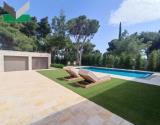 ΕΠΙΠΛΕΟΝ ΧΑΡΑΚΤΗΡΙΣΤΙΚΑ: Κουφώματα (ΑLUMIL) συρόμενα θερμοδιακοπής με τριπλά ενεργειακά τζάμια και ηλεκτρικές σίτες στο ισόγειο. Ηλεκτρικά κουφώματα και σίτες στους ορόφους. Αντλία θερμότητας (ρεύματος) ψύξης-θέρμανσης με FAN COIL οροφής (DAIKIN). Ηλιακός τριπλής ενέργειας, 2 boiler (θέρμανσης + νερό χρήσης), συναγερμός με κλειστό κύκλωμα (CCTV), φωτισμός οροφής LED (linear + χωνευτά σποτ). Θυροτηλεόραση. Πισίνα υπερχείλισης (με ηλεκτρόλυση) 7,50Χ3,50 μ., αντίθετης κολύμβησης με ψηφίδες και φωτισμό. Γκαζόν τεχνητό υψηλής ποιότητας. Υπαίθριο πάρκινγκ 2 θέσεων. Πόρτες ασφαλείας (3), θερμοπρόσοψη 20 εκ. + 10 εκ.. Εξωτερικός φωτισμός και αυτόματο πότισμα. Πέτρινες εξωτερικές επενδύσεις. 250 τ.μ. κύριοι χώροι, 105 τ.μ. βοηθητικοί χώροι. Νότιος προσανατολισμός. Θα παραμείνουν τα έπιπλα και οι ηλεκτρικές συσκευές. Πλησίoν σχολείων και συγκοινωνίας. ΑΠΟΚΛΕΙΣΤΙΚΗ ΑΝΑΘΕΣΗ.