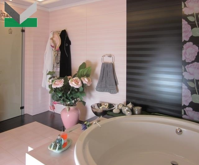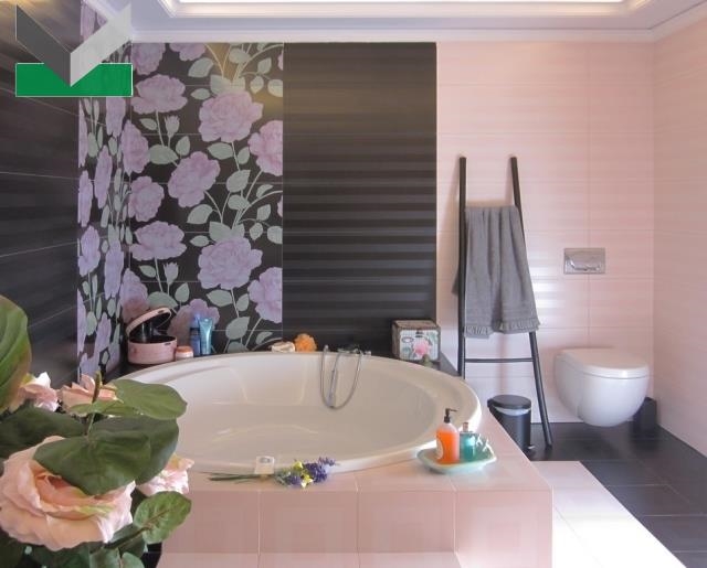 1ος ΟΡΟΦΟΣ: 140 τμ περιλαμβάνει 3 master υ/δ. Η σουϊτα των γονέων περιλαμβάνει βεστιάριο, μεγάλο μπάνιο με μπανιέρα και μπαλκόνι. Τα άλλα δύο μπάνια περιλαμβάνουν το μεν ντουζιέρα jacuzzi το δε άλλο μπανιέρα. Μπαλκόνια στα υ/δ. Δάπεδα γρανιτοπλακάκια. Η εσωτερική σκάλα ή το ασανσέρ οδηγούν στην σοφίτα.