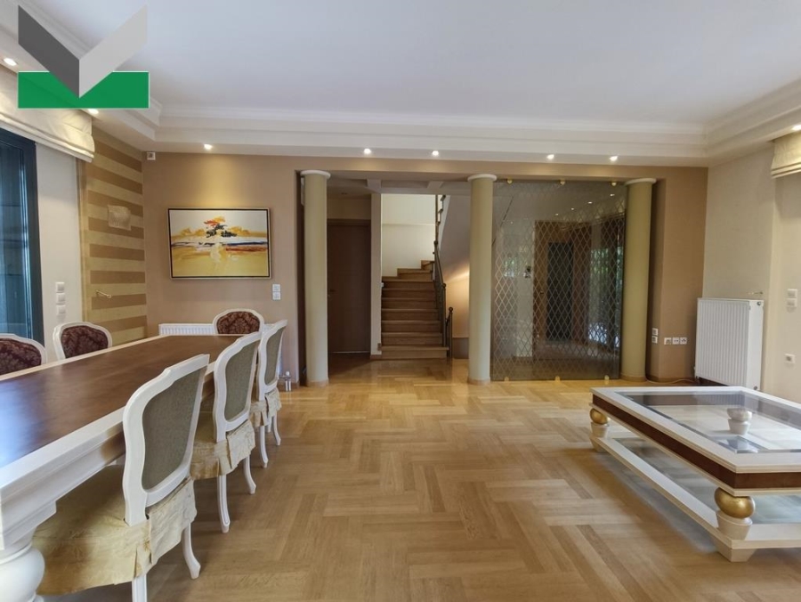 This exceptional detached residence is expertly proportioned across four levels, situated within a private housing complex featuring a communal pool. It enjoys tranquil, green surroundings, close to the central square and local amenities of the Varibobi area in the Acharnes Municipality.