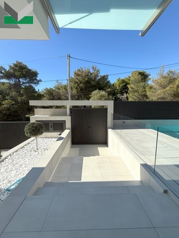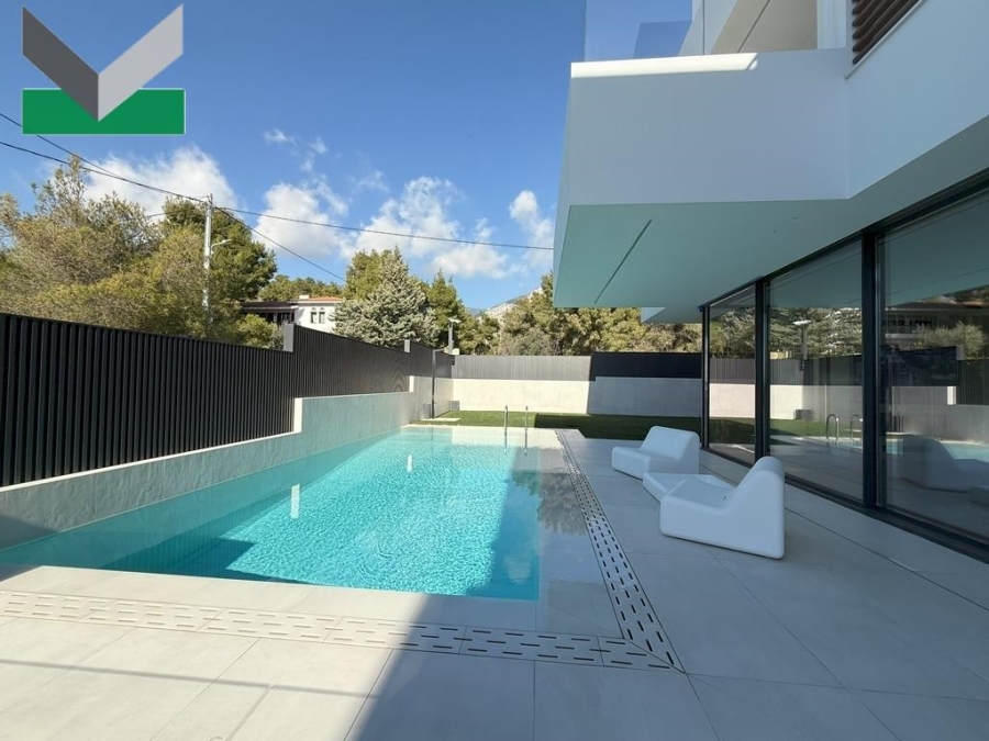 ADDITIONAL SPECIFICATIONS: This cutting-edge property features aluminium, thermally broken, triple-glazed, energy-efficient sliding windows. Also, fly screens and electric roller shutters (EMF EUROPA brand). Electric heat pump system for heating & cooling (MITSUBISHI brand). Dry floor heating system (VarioComp -VARIOTHERM brand). Solar panels are placed on the pitched roof. Natural gas installation. VRF central air conditioning system (MITSUBISHI brand). Pivot security front door (GOLDEN DOOR brand) along with a heavy-duty electromagnetic lock, -using 15 armature brackets. Second security door (in the garage). Automatic sliding, garage door and pivot pedestrian entrance. Mechanical 3-stop lift (OTIS brand). Alarm in/outdoor CCTV system. Audio & video door entry system. Two-car capacity garage area and one exterior parking space plus 3 electric-car fast chargers. LED linear and recessed ceiling in/outdoor lighting fixtures. Infinity pool. Thermal insulation and some stone decoration on the external walls. Landscaped garden, high quality artificial turf & automated watering system. Main spaces: 228 sqm, auxiliary spaces: 172 sqm. Tranquil, green environment. Close to the 1st public primary/kindergarten school, the bus stop and local amenities.