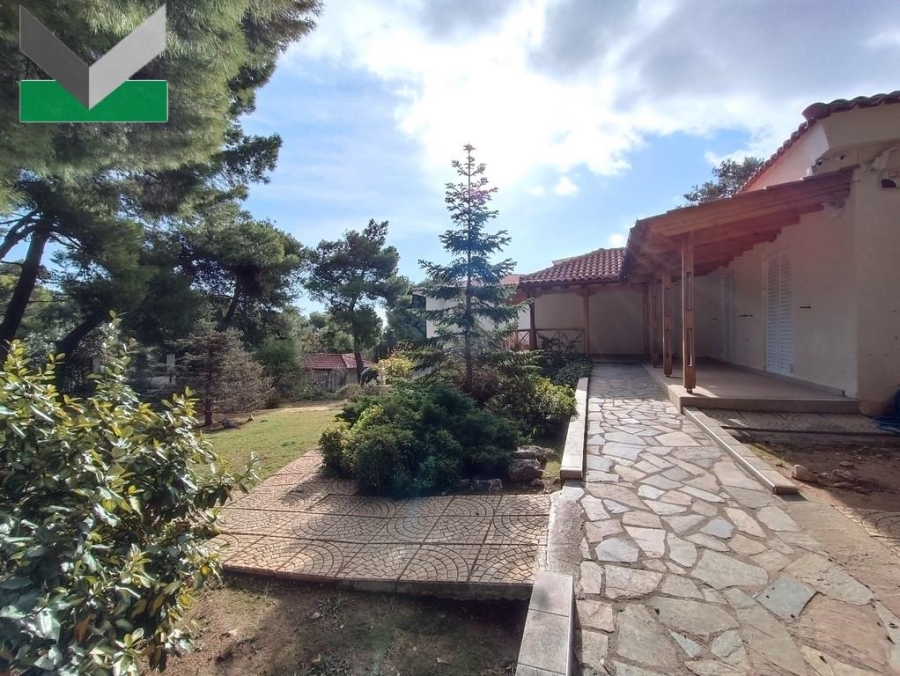 This prefabricated dwelling is composed of two storeys with loft and landscaped gardens, in an one-acre corner plot just a stone's throw from Thrakomakedones' church.